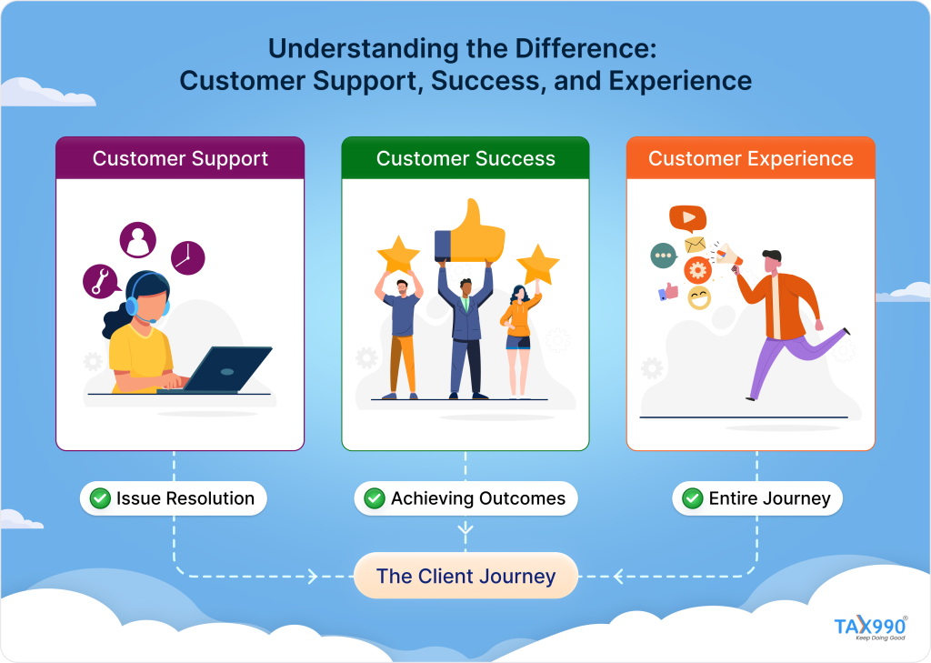 As we transition from understanding the individual roles of customer support, success, and experience, it’s important to note that they do not stand alone at Tax990. Instead, they work in harmony under The Tax990 Commitment to ensure that our clients not only meet their filing requirements but do so with the highest levels of confidence, ease, and trust.